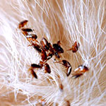 Reproducción: La hembra pone entre 200 y 400 huevos. A los 5 o 7 días nacen las larvas que se desarrollan entre los 7 y varios meses. Luego de este período, la larva hila un capullo, donde termina su transformación en pulga adulta, disponiéndose a saltar sobre su huésped.